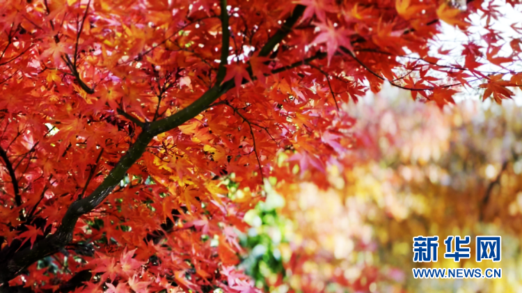 冬日时节,安徽省阜阳市颍上县大片枫叶依然五彩斑斓。层层叠叠的枫叶,随风摇曳,犹如流动的水彩画,令人心醉。新华网发(徐红梅 摄)